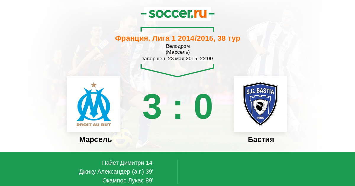 Протокол матча Марсель против Бастия