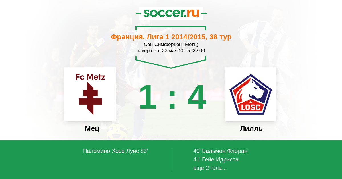 Протокол матча Мец против Лилль