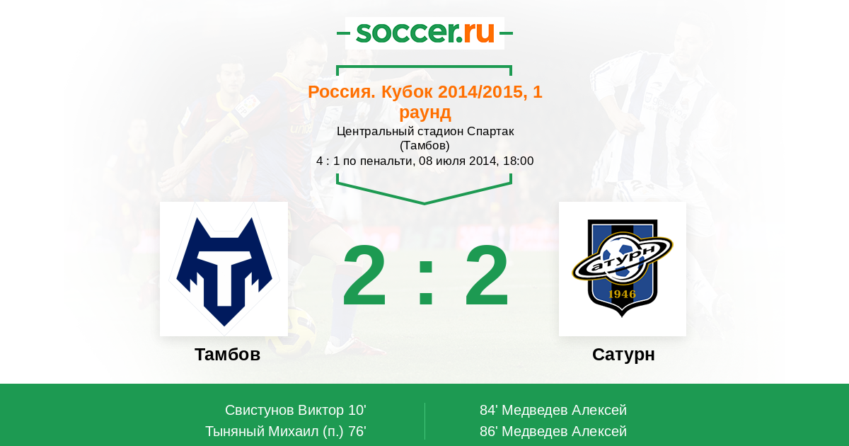 Протокол матча Тамбов против Сатурн