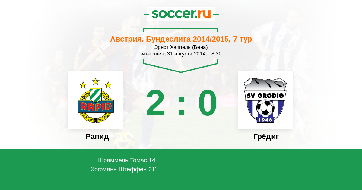 Протокол матча Рапид против Грёдиг