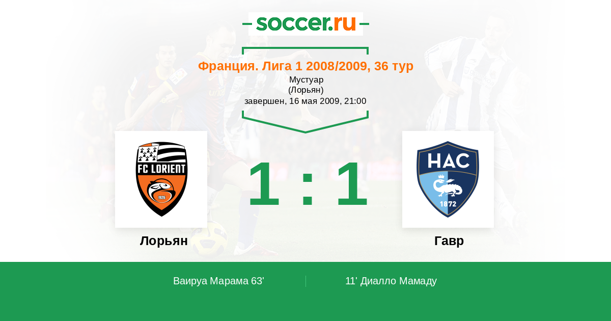 Протокол матча Лорьян против Гавр