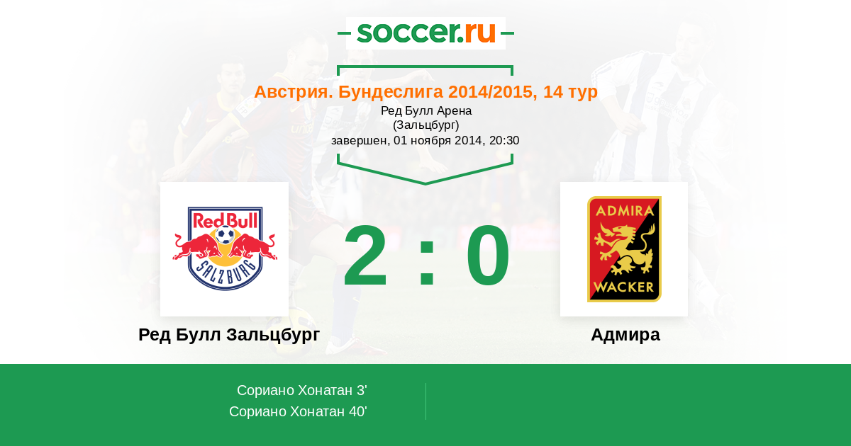Протокол матча Ред Булл Зальцбург против Адмира