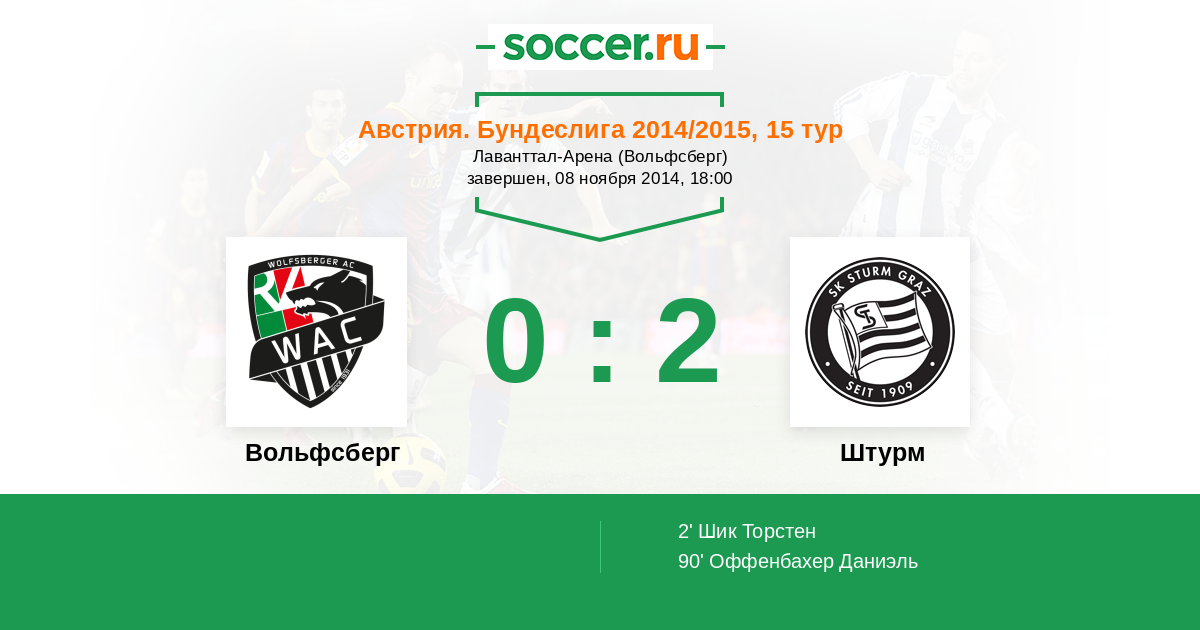 Протокол матча Вольфсберг против Штурм
