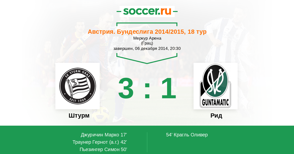17' (1:0) Джуричин Марко (9) (Пьезингер Симон (13))