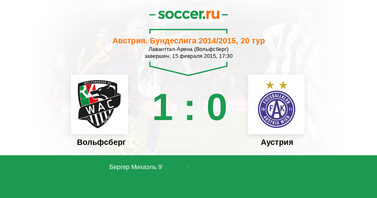 9' (1:0) Бергер Михаэль (18) (Верницниг Кристофер (24))