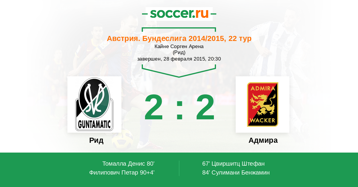 Протокол матча Рид против Адмира