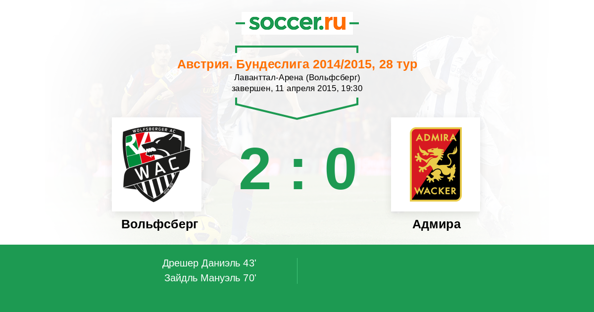 Протокол матча Вольфсберг против Адмира