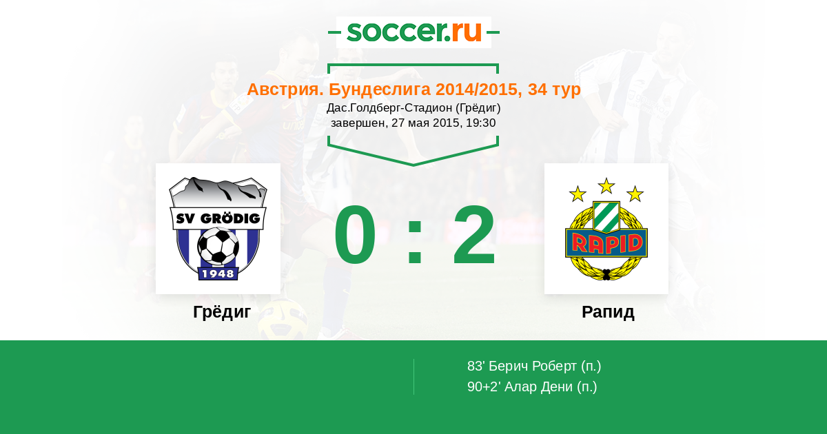 Протокол матча Грёдиг против Рапид