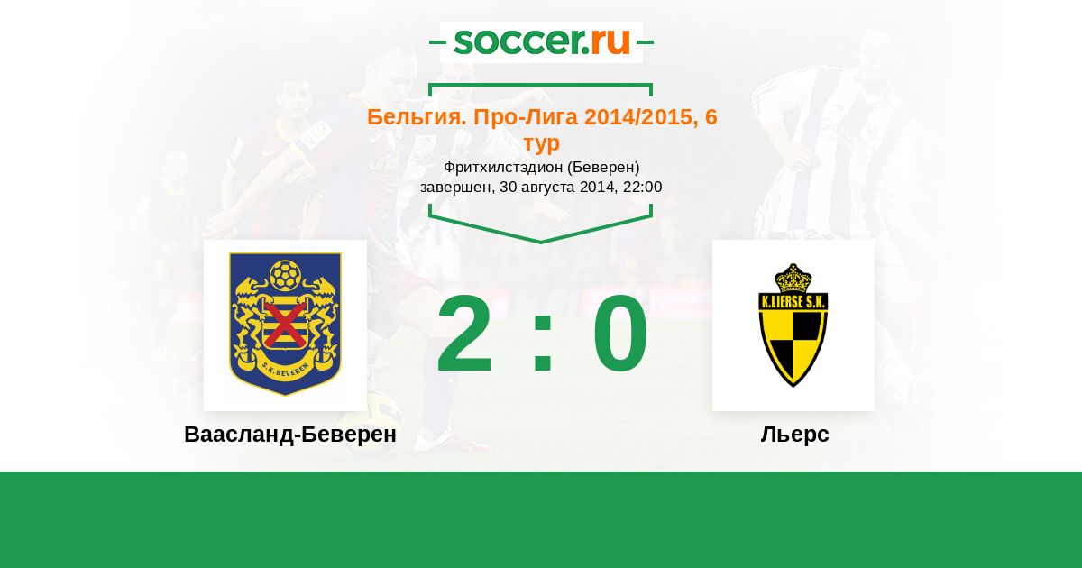 Бельгия. Про-Лига 22.09.2012 Ваасланд-Беверен Логотип футбольный клуб Ваасланд-Беверен 1:1 Логотип футбольный клуб Льерс (Лир) Льерс