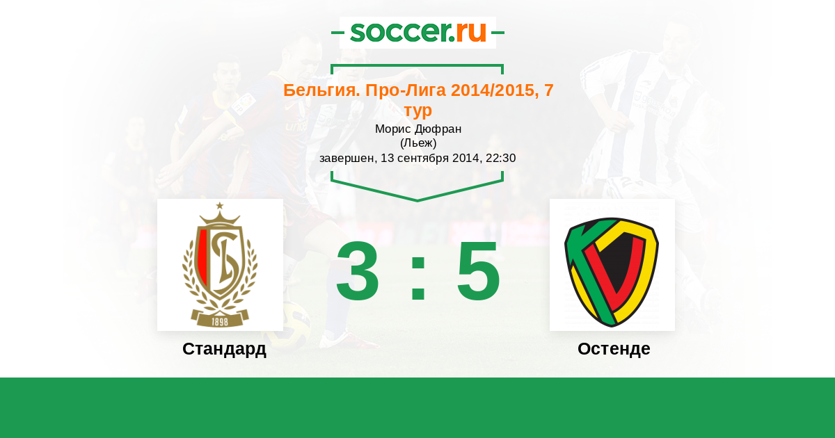 Бельгия. Про-Лига 15.09.2013 Остенде Логотип футбольный клуб Остенде 2:4 Логотип футбольный клуб Стандард (Льеж) Стандард