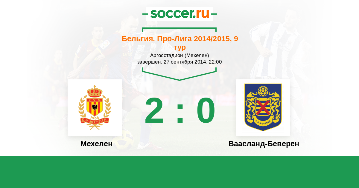 Бельгия. Про-Лига 05.04.2015 Мехелен Логотип футбольный клуб Мехелен 4:1 Логотип футбольный клуб Ваасланд-Беверен Ваасланд-Беверен