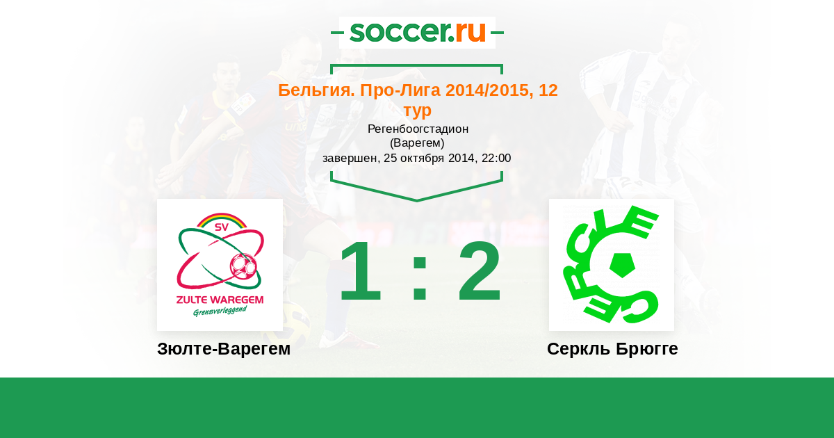 Бельгия. Про-Лига 06.10.2012 Зюлте-Варегем Логотип футбольный клуб Зюлте-Варегем 3:1 Логотип футбольный клуб Серкль Брюгге Серкль Брюгге