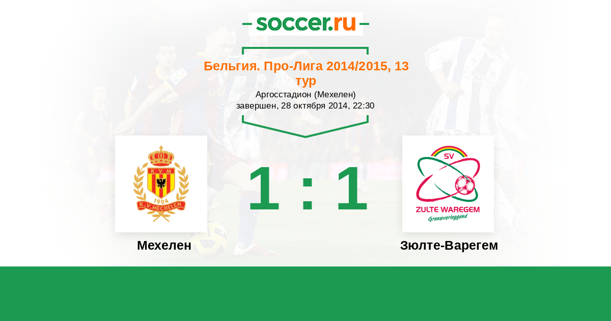 Бельгия. Про-Лига 02.11.2013 Мехелен Логотип футбольный клуб Мехелен 2:2 Логотип футбольный клуб Зюлте-Варегем Зюлте-Варегем