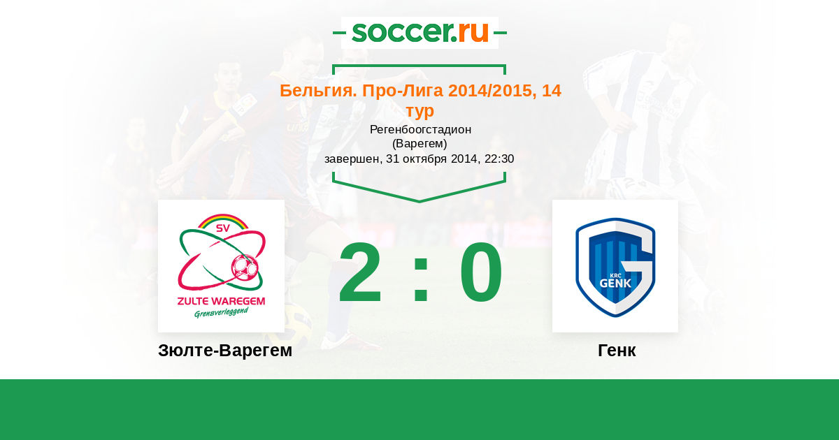 Бельгия. Про-Лига 07.03.2015 Генк Логотип футбольный клуб Генк 3:2 Логотип футбольный клуб Зюлте-Варегем Зюлте-Варегем