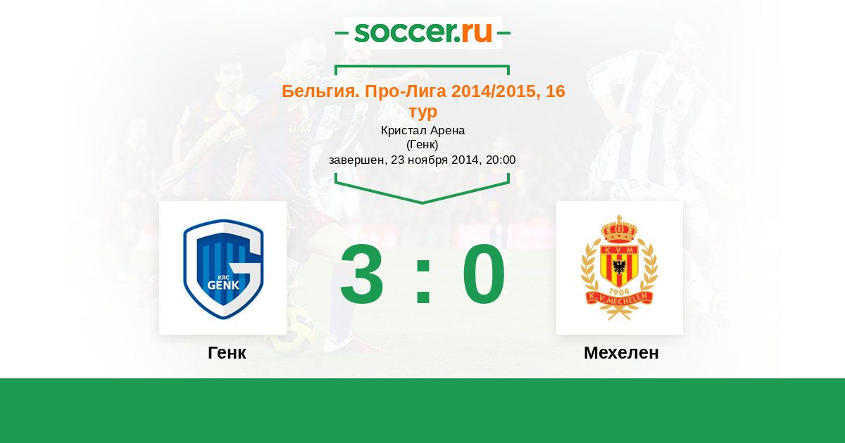 Бельгия. Про-Лига 01.02.2014 Мехелен Логотип футбольный клуб Мехелен 0:2 Логотип футбольный клуб Генк Генк