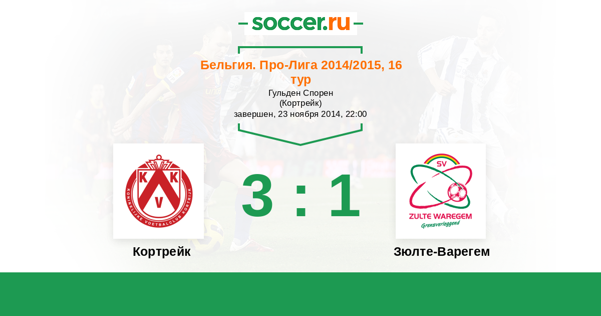 Бельгия. Про-Лига 01.11.2015 Зюлте-Варегем Логотип футбольный клуб Зюлте-Варегем 2:2 Логотип футбольный клуб Кортрейк Кортрейк