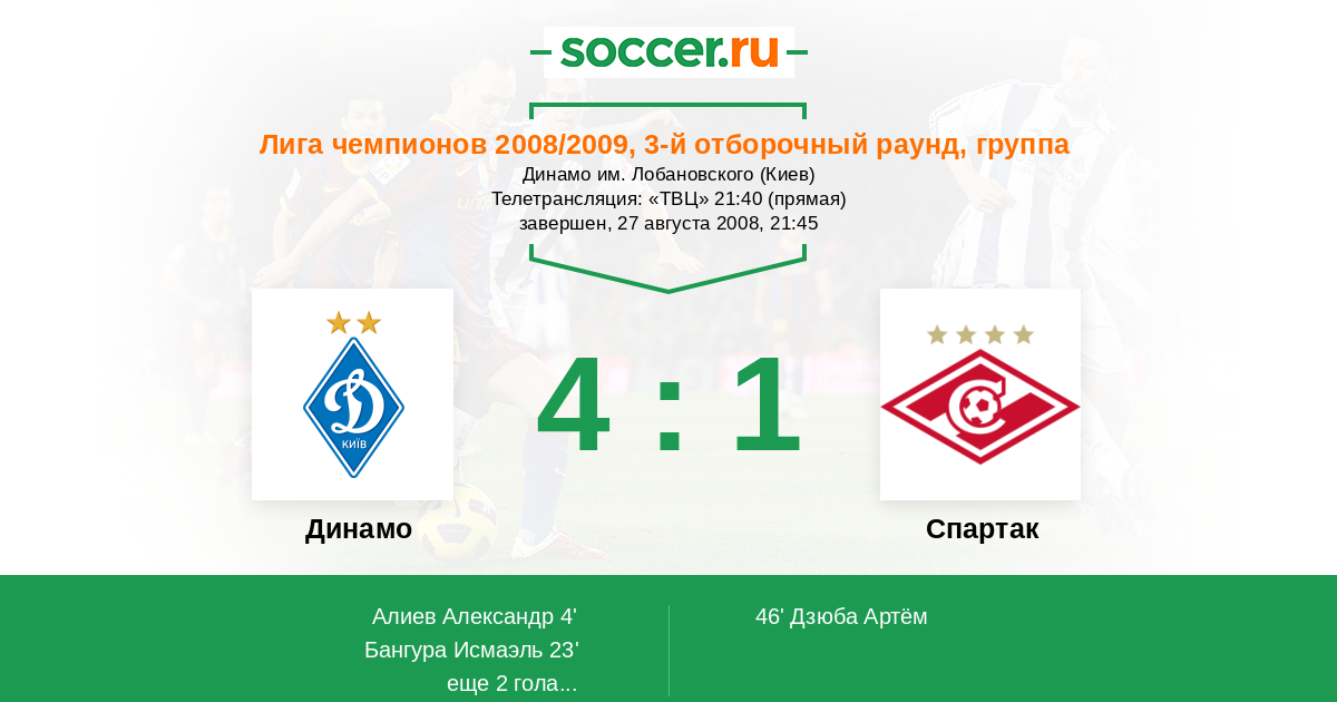 Протокол матча Динамо против Спартак