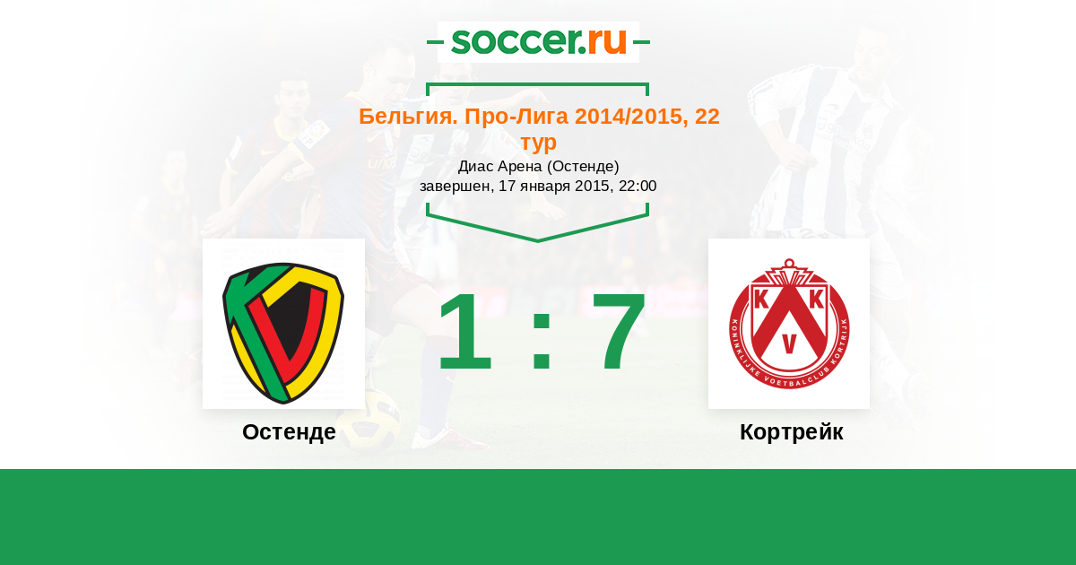 Бельгия. Про-Лига 08.03.2014 Остенде Логотип футбольный клуб Остенде 0:0 Логотип футбольный клуб Кортрейк Кортрейк