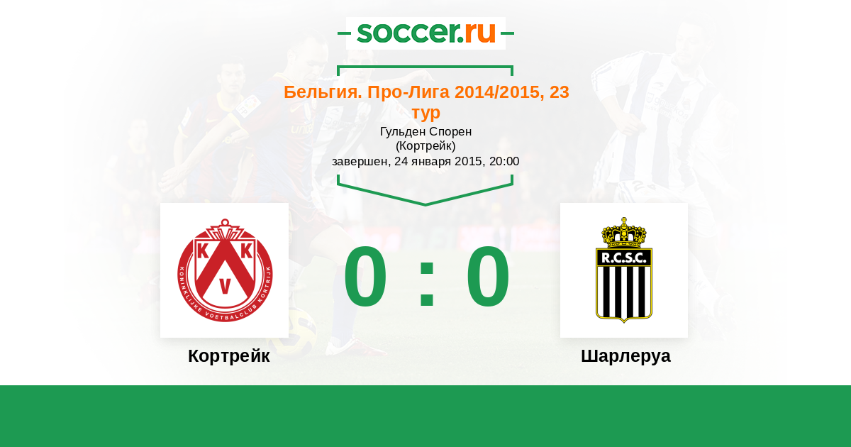 Бельгия. Про-Лига 19.04.2015 Кортрейк Логотип футбольный клуб Кортрейк 1:1 Логотип футбольный клуб Шарлеруа Шарлеруа