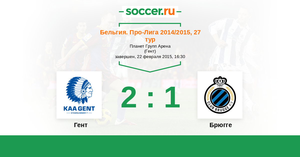 Бельгия. Про-Лига 26.04.2015 Гент Логотип футбольный клуб Гент 2:2 Логотип футбольный клуб Брюгге Брюгге