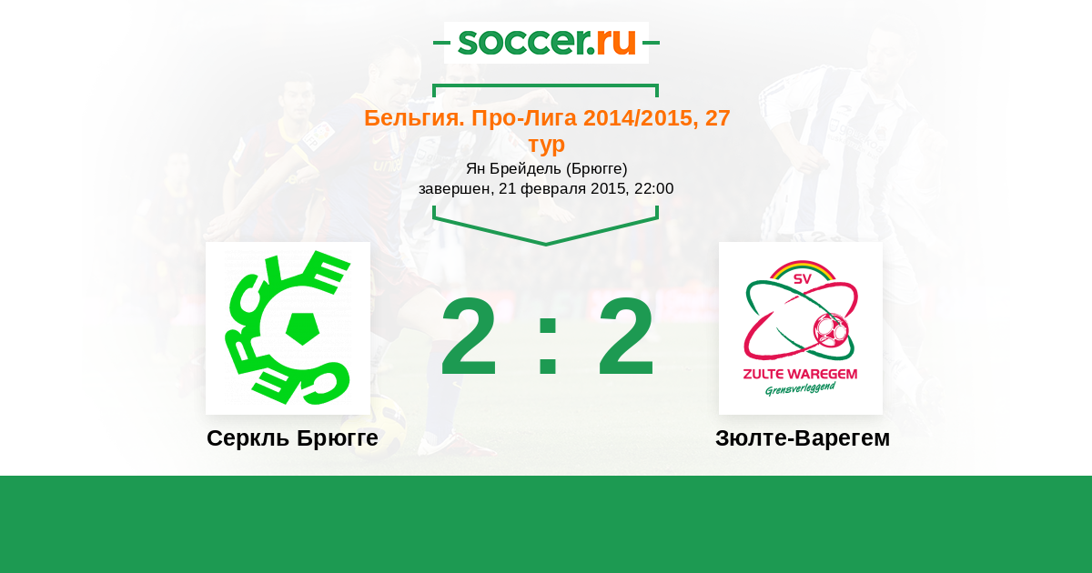 Бельгия. Про-Лига 15.02.2014 Зюлте-Варегем Логотип футбольный клуб Зюлте-Варегем 2:1 Логотип футбольный клуб Серкль Брюгге Серкль Брюгге