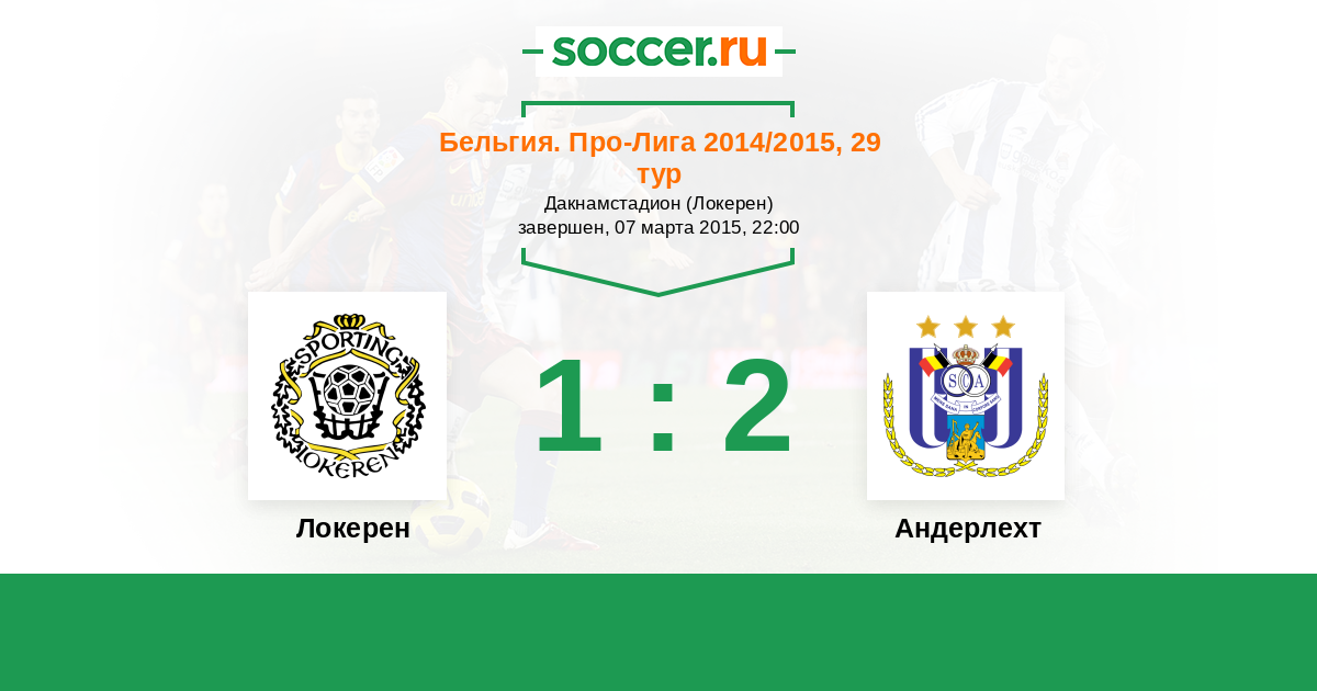 Бельгия. Про-Лига 11.04.2014 Локерен Логотип футбольный клуб Локерен 1:2 Логотип футбольный клуб Андерлехт (Брюссель) Андерлехт