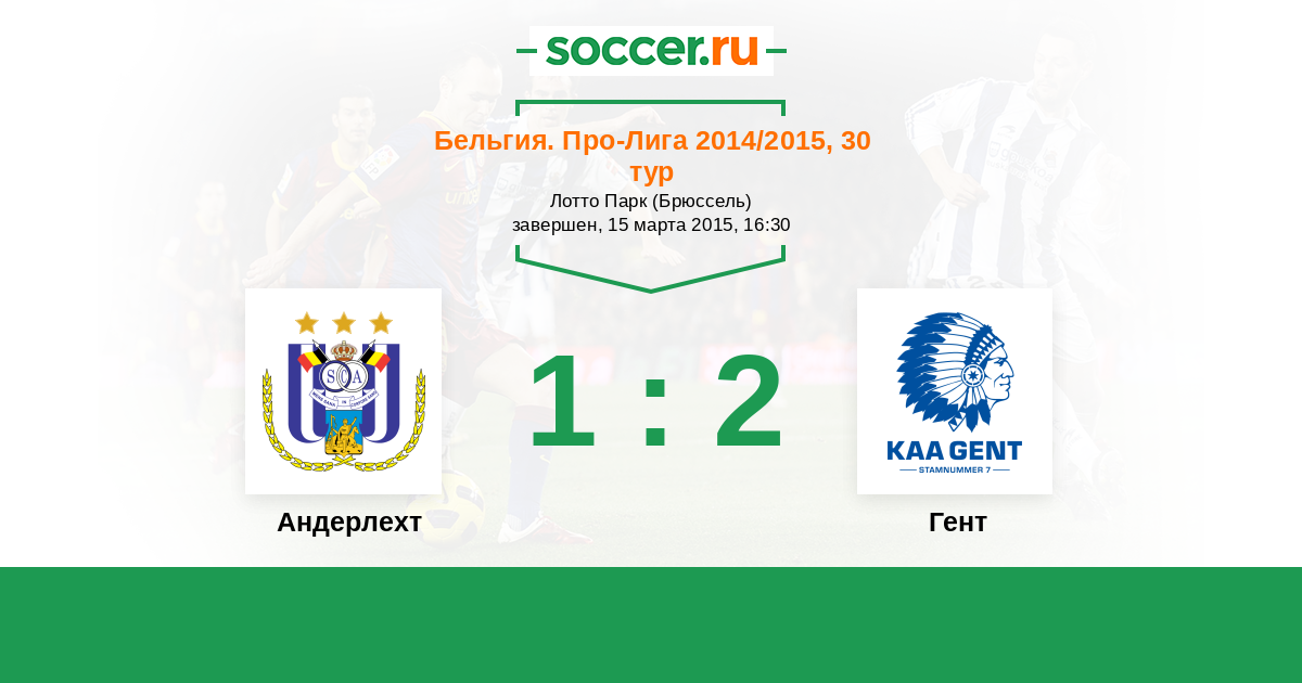 Бельгия. Про-Лига 30.04.2015 Гент Логотип футбольный клуб Гент 2:1 Логотип футбольный клуб Андерлехт (Брюссель) Андерлехт