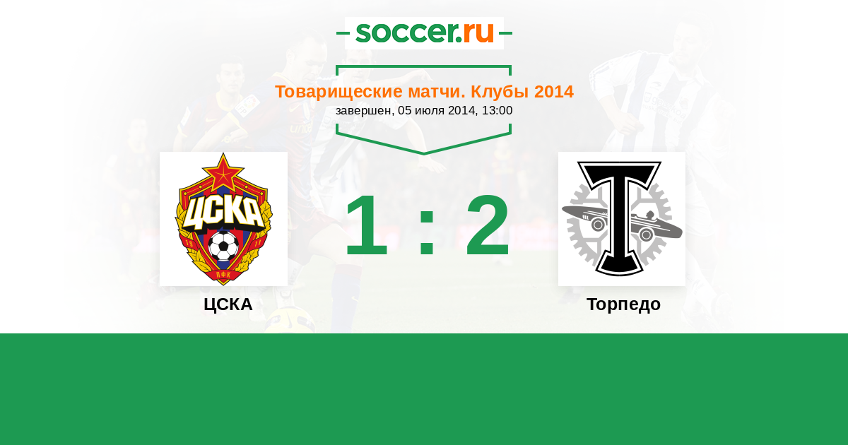 Товарищеские матчи. Клубы 12.10.2014 ЦСКА Логотип футбольный клуб ЦСКА (Москва) 0:2 Логотип футбольный клуб Торпедо (Москва) Торпедо