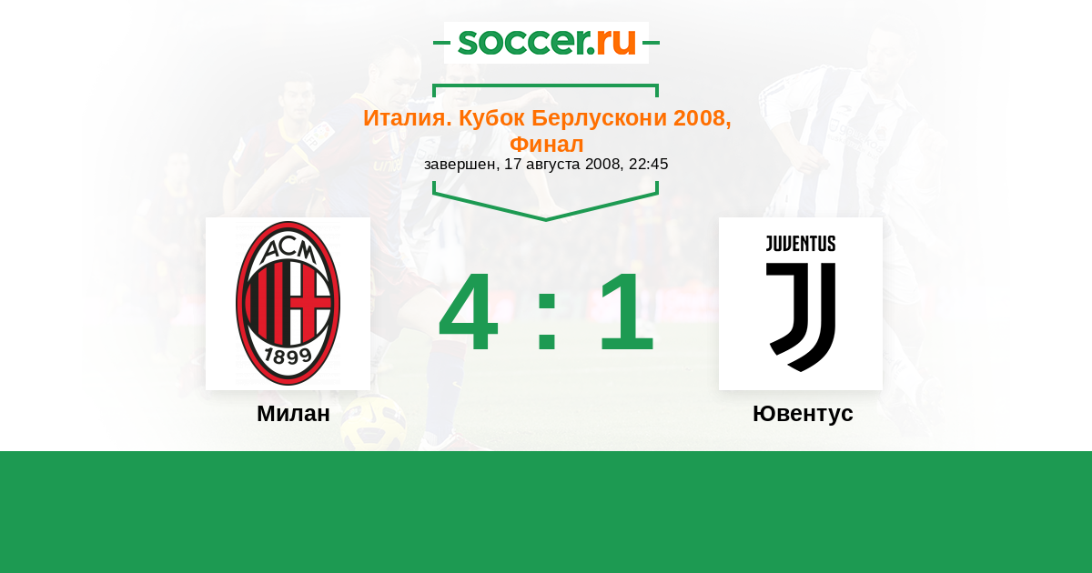 Кубок Берлускони 21.08.2011 Милан Логотип футбольный клуб Милан 2:1 Логотип футбольный клуб Ювентус (Турин) Ювентус