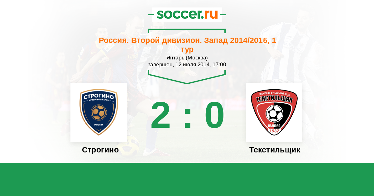 Россия. Вторая лига. Группа 2 18.07.2013 Строгино Логотип футбольный клуб Строгино (Москва) 1:2 Логотип футбольный клуб Текстильщик (Иваново) Текстильщик