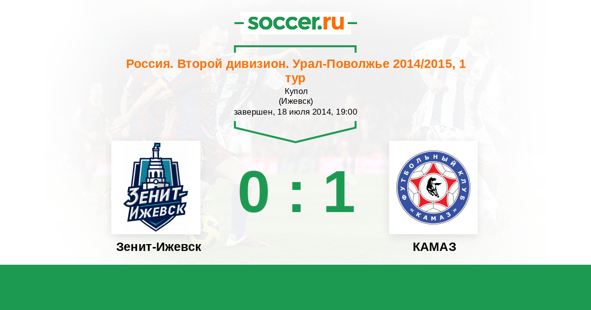 Россия. Вторая лига. Группа 4 26.07.2013 КАМАЗ Логотип футбольный клуб КАМАЗ (Набережные Челны) 0:2 Логотип футбольный клуб Зенит-Ижевск Зенит-Ижевск