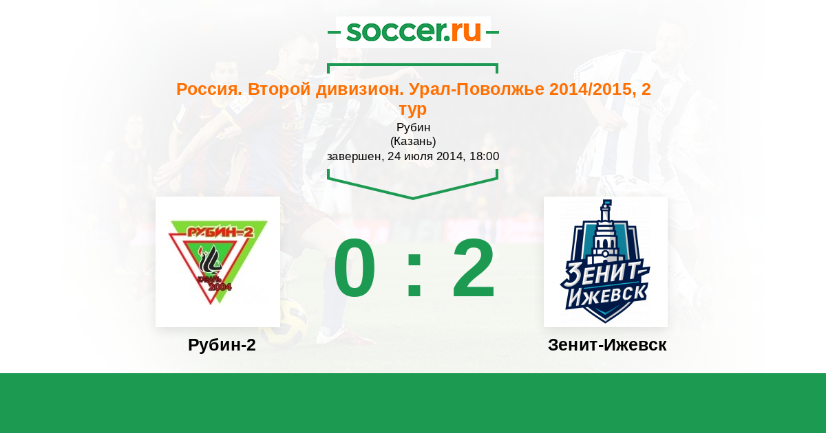 Россия. Вторая лига. Группа 4 23.09.2014 Зенит-Ижевск Логотип футбольный клуб Зенит-Ижевск 1:4 Логотип футбольный клуб Рубин-2 (Казань) Рубин-2