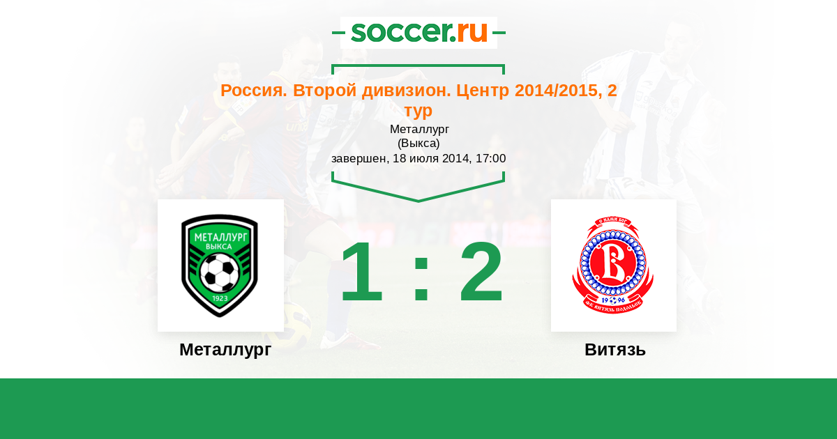 Россия. Вторая лига. Группа 3 17.10.2014 Витязь Логотип футбольный клуб Витязь (Подольск) 1:1 Логотип футбольный клуб Металлург (Выкса) Металлург