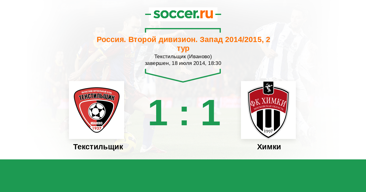Россия. Вторая лига. Группа 2 01.05.2014 Химки Логотип футбольный клуб Химки 2:3 Логотип футбольный клуб Текстильщик (Иваново) Текстильщик
