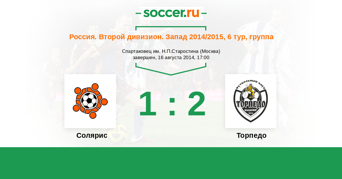 Россия. Вторая лига. Группа 2 27.09.2015 Торпедо Логотип футбольный клуб Торпедо (Владимир) 0:0 Логотип Солярис (Москва) Солярис
