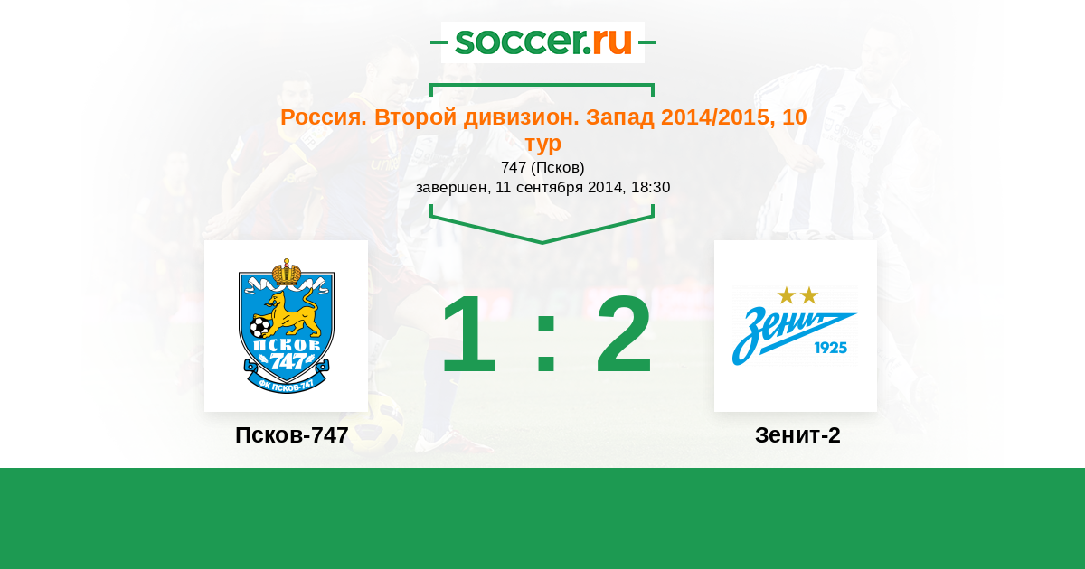 Россия. Вторая лига. Группа 2 05.06.2014 Зенит-2 Логотип футбольный клуб Зенит-2 (Санкт-Петербург) 0:3 Логотип футбольный клуб Псков-747 Псков-747