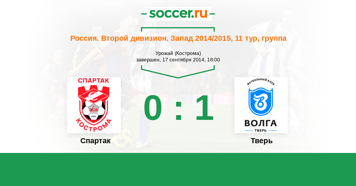 Россия. Вторая лига. Группа 2 07.05.2015 Тверь Логотип футбольный клуб Тверь 2:1 Логотип футбольный клуб Спартак Кострома Спартак Кострома