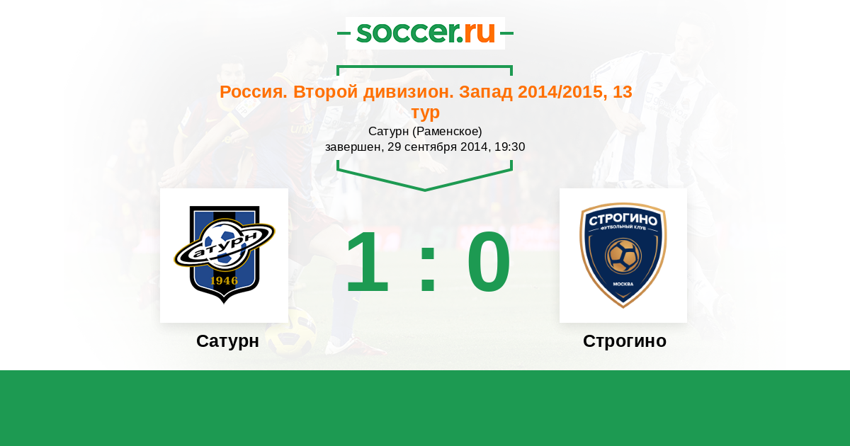 Россия. Вторая лига. Группа 2 18.05.2015 Строгино Логотип футбольный клуб Строгино (Москва) 2:1 Логотип футбольный клуб Сатурн (Раменское) Сатурн