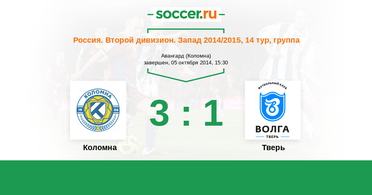 Россия. Вторая лига. Группа 2 24.05.2015 Тверь Логотип футбольный клуб Тверь 3:0 Логотип футбольный клуб Коломна Коломна