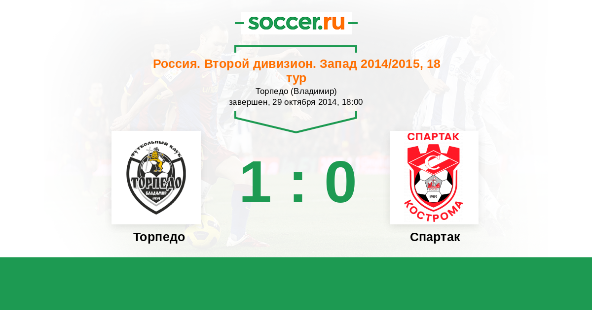 Россия. Вторая лига. Группа 2 18.08.2015 Торпедо Логотип футбольный клуб Торпедо (Владимир) 1:1 Логотип футбольный клуб Спартак Кострома Спартак Кострома