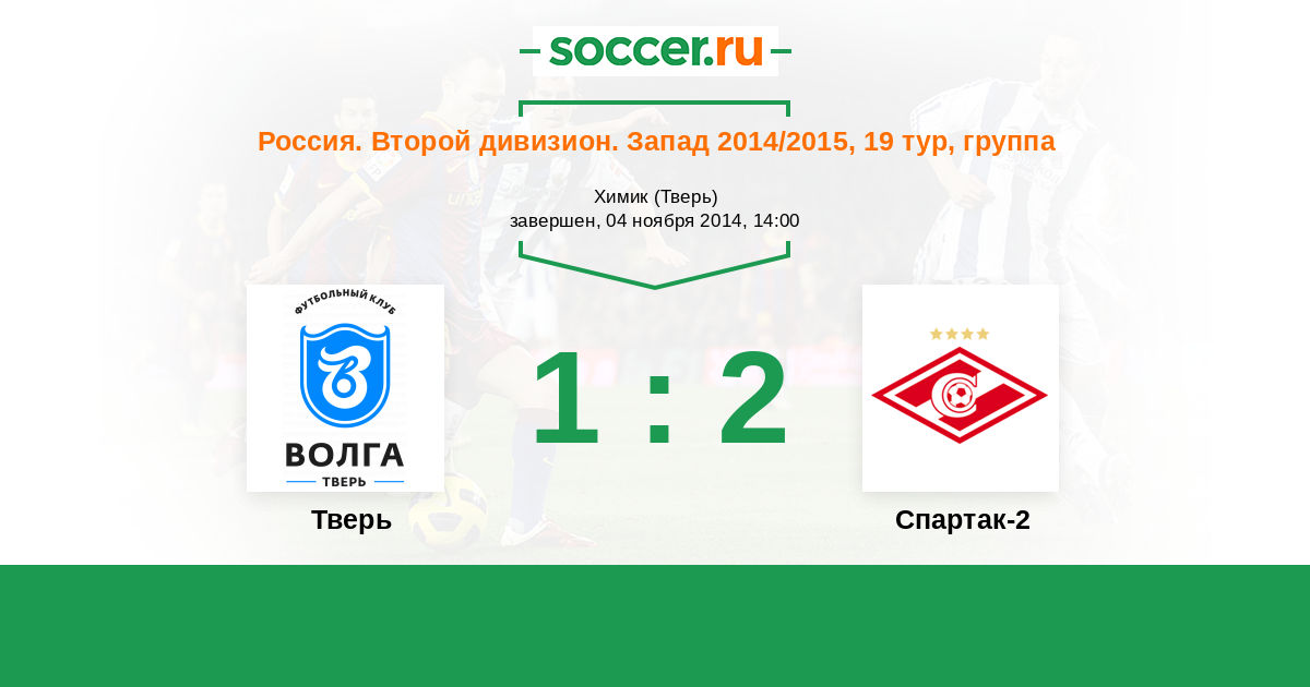 Россия. Вторая лига. Группа 2 08.08.2014 Спартак-2 Логотип футбольный клуб Спартак-2 (Москва) 4:1 Логотип футбольный клуб Тверь Тверь