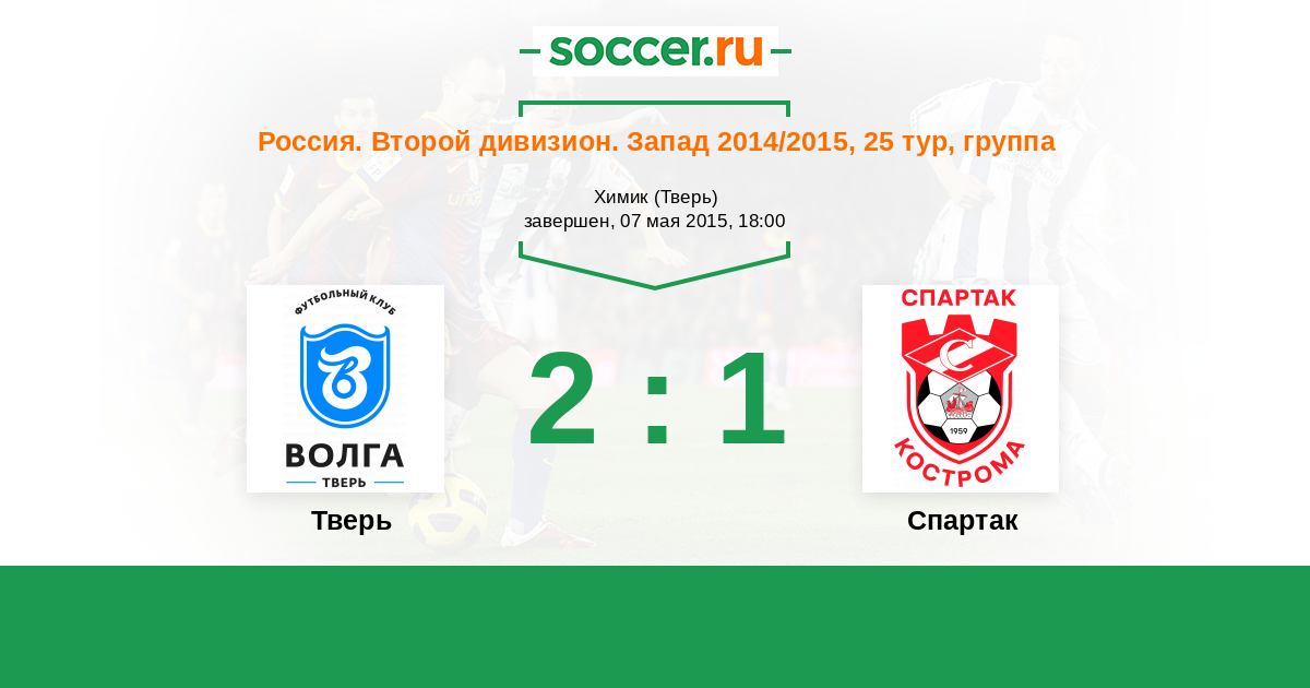 Россия. Вторая лига. Группа 2 26.05.2016 Тверь Логотип футбольный клуб Тверь 1:2 Логотип футбольный клуб Спартак Кострома Спартак Кострома