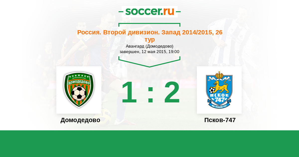 Россия. Вторая лига. Группа 2 08.11.2015 Домодедово Логотип футбольный клуб Домодедово (Москва) 2:1 Логотип футбольный клуб Псков-747 Псков-747