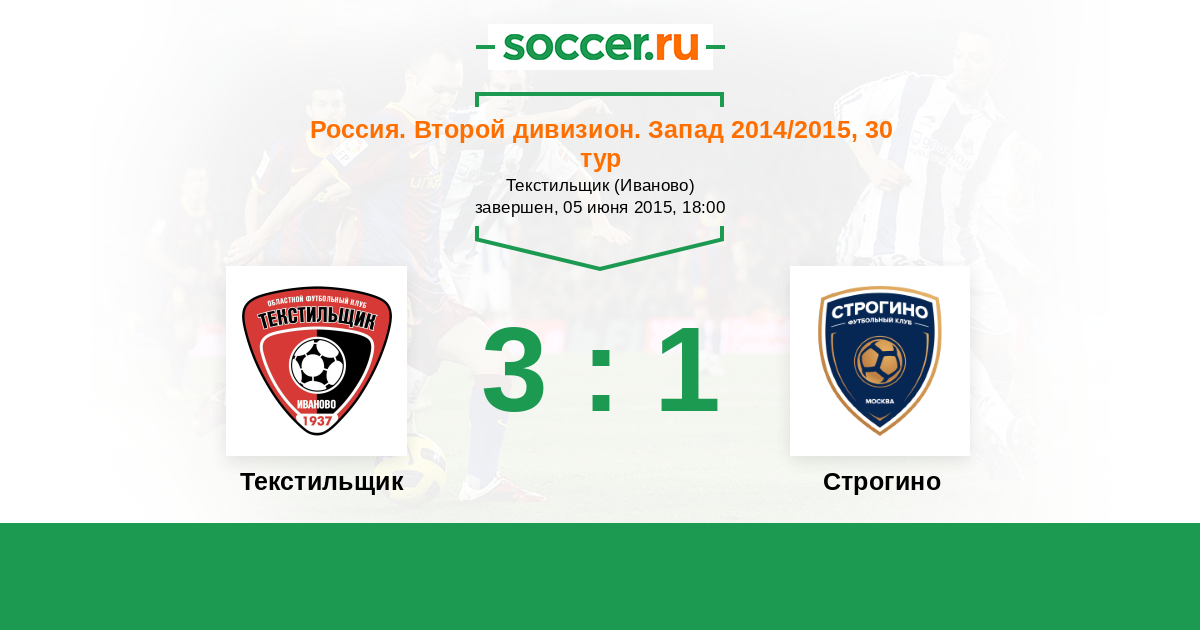 Россия. Вторая лига. Группа 2 05.06.2014 Текстильщик Логотип футбольный клуб Текстильщик (Иваново) 1:0 Логотип футбольный клуб Строгино (Москва) Строгино