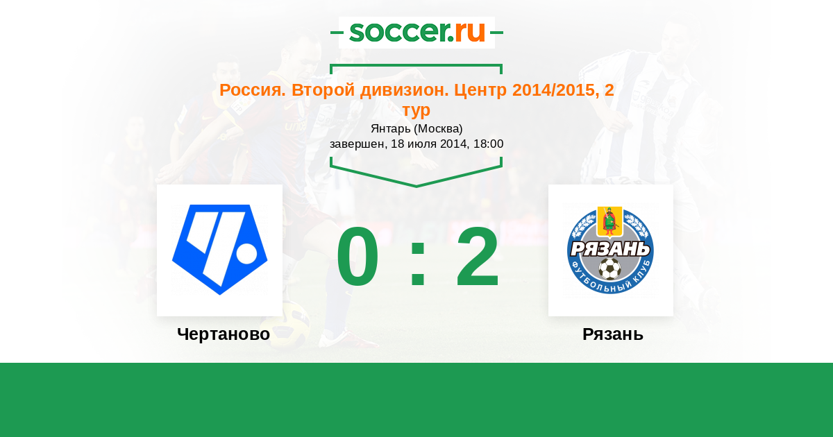 Россия. Вторая лига. Группа 3 03.08.2015 Чертаново Логотип футбольный клуб Чертаново (Москва) 0:1 Логотип футбольный клуб Рязань Рязань