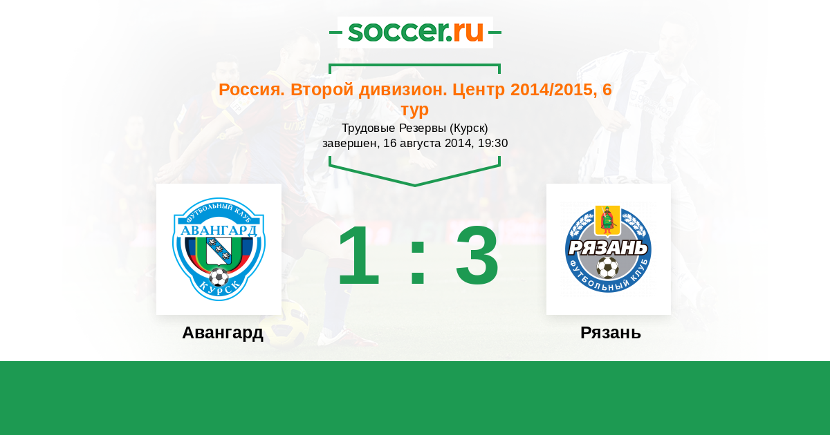 Россия. Вторая лига. Группа 3 14.09.2013 Авангард Логотип футбольный клуб Авангард (Курск) 1:1 Логотип футбольный клуб Звезда Рз (Рязань) Звезда Рз