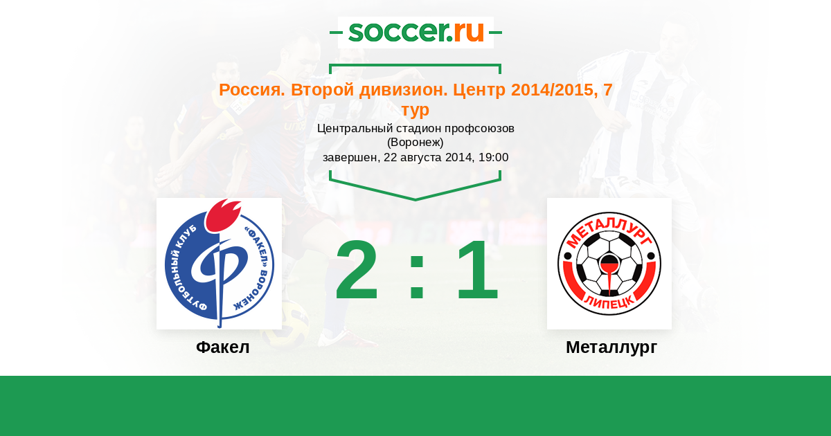 Россия. Вторая лига. Группа 3 04.08.2013 Факел Логотип футбольный клуб Факел (Воронеж) 2:1 Логотип футбольный клуб Металлург (Липецк) Металлург