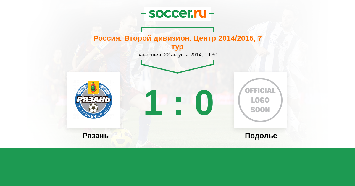 Россия. Вторая лига. Группа 3 10.04.2015 Подолье Логотип футбольный клуб Подолье (Подольский район) 0:1 Логотип футбольный клуб Рязань Рязань