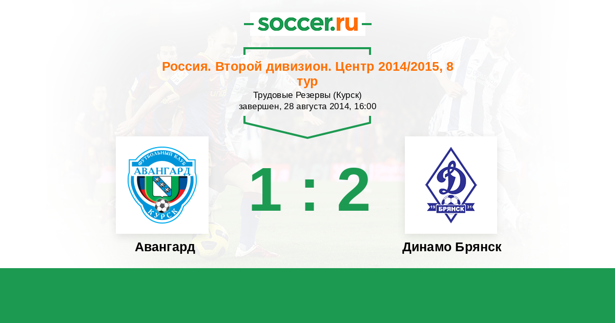 Россия. Вторая лига. Группа 3 04.10.2015 Авангард Логотип футбольный клуб Авангард (Курск) 2:2 Логотип футбольный клуб Динамо Брянск Динамо Брянск