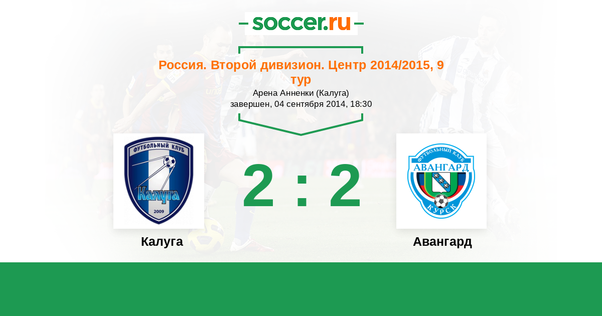 Россия. Вторая лига. Группа 3 21.09.2015 Авангард Логотип футбольный клуб Авангард (Курск) 1:0 Логотип футбольный клуб Калуга Калуга